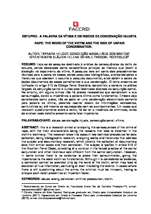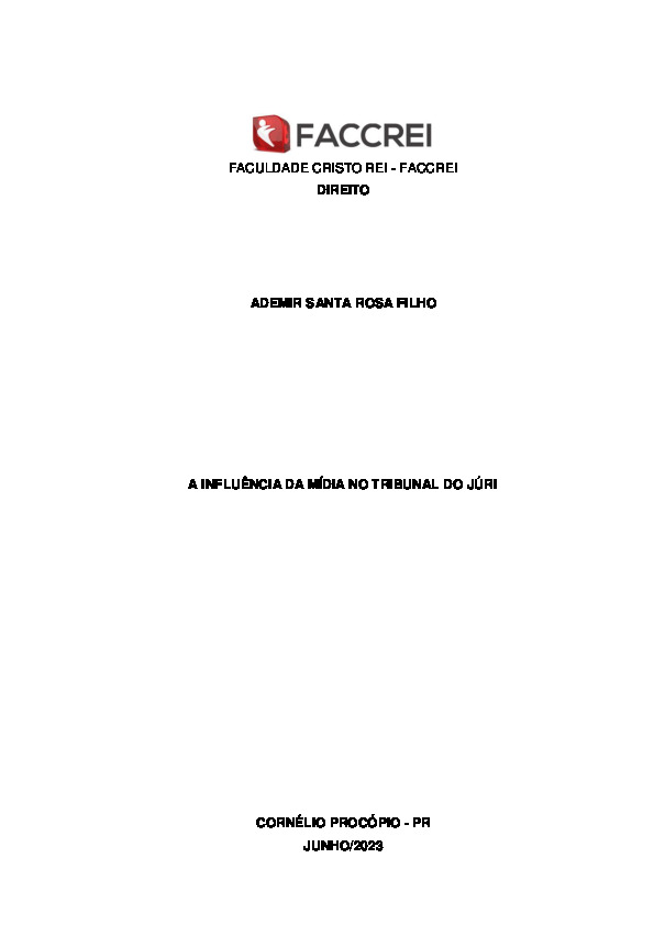 O presente trabalho tem por escopo, a partir de doutrinas, artigos, internet e jurisprudência, fazer a análise da interferência da mídia no devido processo legal nos crimes de...